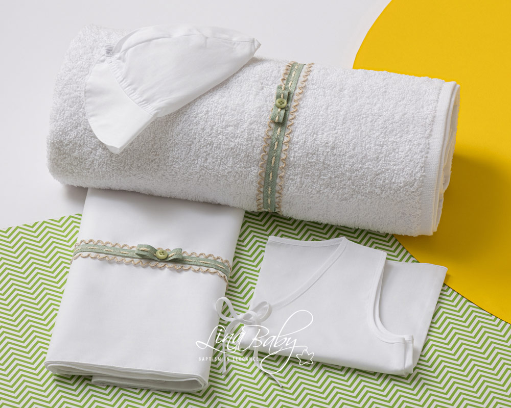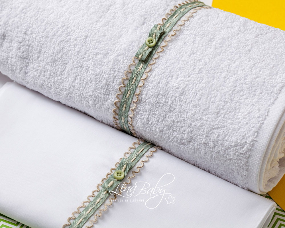 Ρομαντισμός που αποτυπώνεται σε κάθε λεπτομέρεια🤍 Βαμβακερό σετ λαδόπανων σε φίνα ivory απόχρωση, διακοσμημένο με απαλή σατέν κορδέλα και μια κομψή σειρά από απλικέ διακοσμητικά λουλούδια που χαρίζουν ανάλαφρη, ρομαντική αίσθηση. Ένα σχέδιο εμπνευσμένο από τη διαχρονική κομψότητα, ιδανικό για βαπτίσεις με ρομαντικό χαρακτήρα και elegant αισθητική. Απαλή υφή, φίνο φινίρισμα και λεπτομέρειες που κάνουν τη διαφορά — για στιγμές που αξίζουν να είναι μοναδικές. Πετσέτα 80*140*450gr2. Πετσέτα παπά 30*40*450gr2. \ Ολες οι πετσέτες της Lina Baby φέρουν την ετικέτα STANDARD 100 by OEKO-TEX® (Αυτό σημαίνει ότι τα προϊόντα δεν περιέχουν επιβλαβή επίπεδα χημικών ουσιών.)"