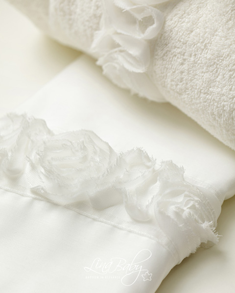 Αναδείξτε τη φινέτσα σε κάθε ξεχωριστή στιγμή με το υπέροχο βαμβακερό σετ λαδόπανων σε εκλεπτυσμένο off-white χρώμα. Το σετ “Καλυψώ” ξεχωρίζει χάρη στην εντυπωσιακή τρέσα από τρισδιάστατα υφασμάτινα τριαντάφυλλα, που χαρίζει ρομαντική, αέρινη διάθεση.Τα φινετσάτα εσώρουχα από ιταλική μουσελίνα ολοκληρώνουν το σετ, προσφέροντας απαλότητα και άνεση στο μωράκι σας, ενώ η λεπτομερής σχεδίαση αποπνέει υψηλή αισθητική και premium χαρακτήρα.Ιδανική επιλογή για βαπτίσεις, ξεχωριστές περιστάσεις ή για όσους αγαπούν τη διαχρονική κομψότητα με μοντέρνα φινέτσα.