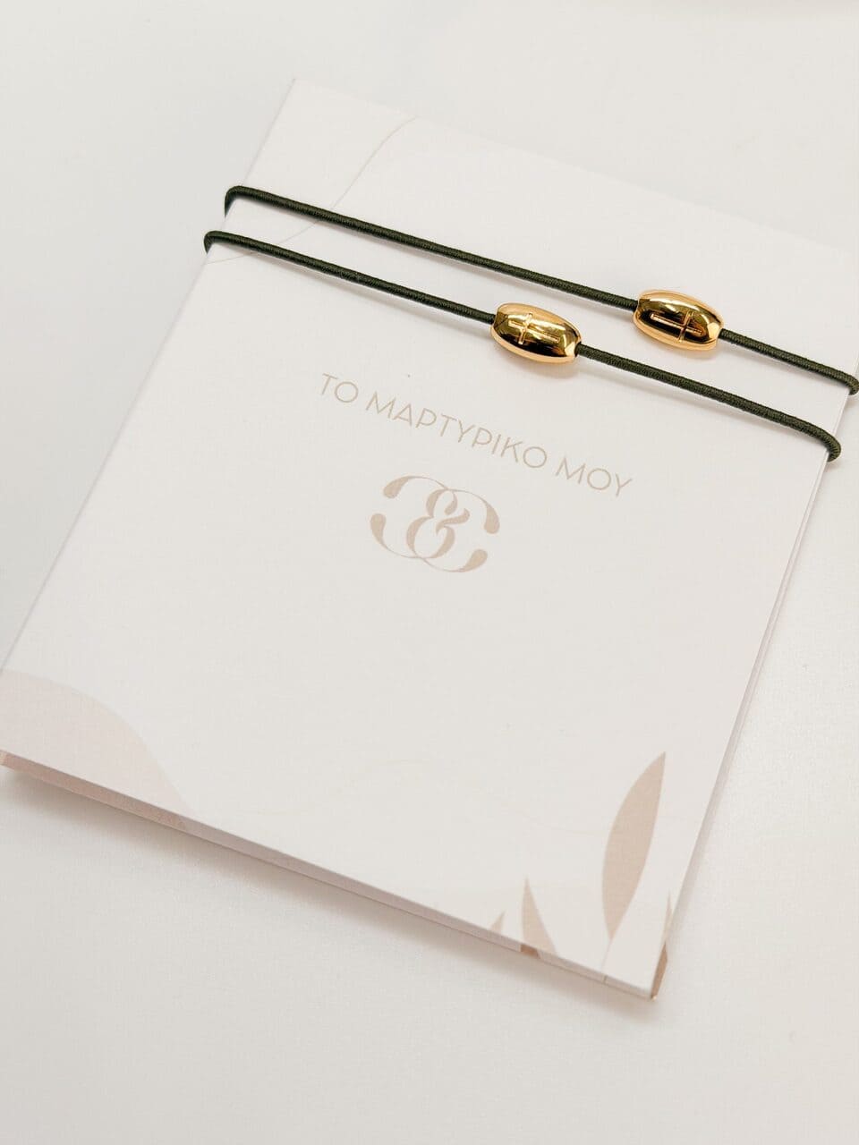Μαρτυρικό βραχιόλι με ελαστικό κορδόνι σε χακί και επιχρυσωμένο σταυρό.