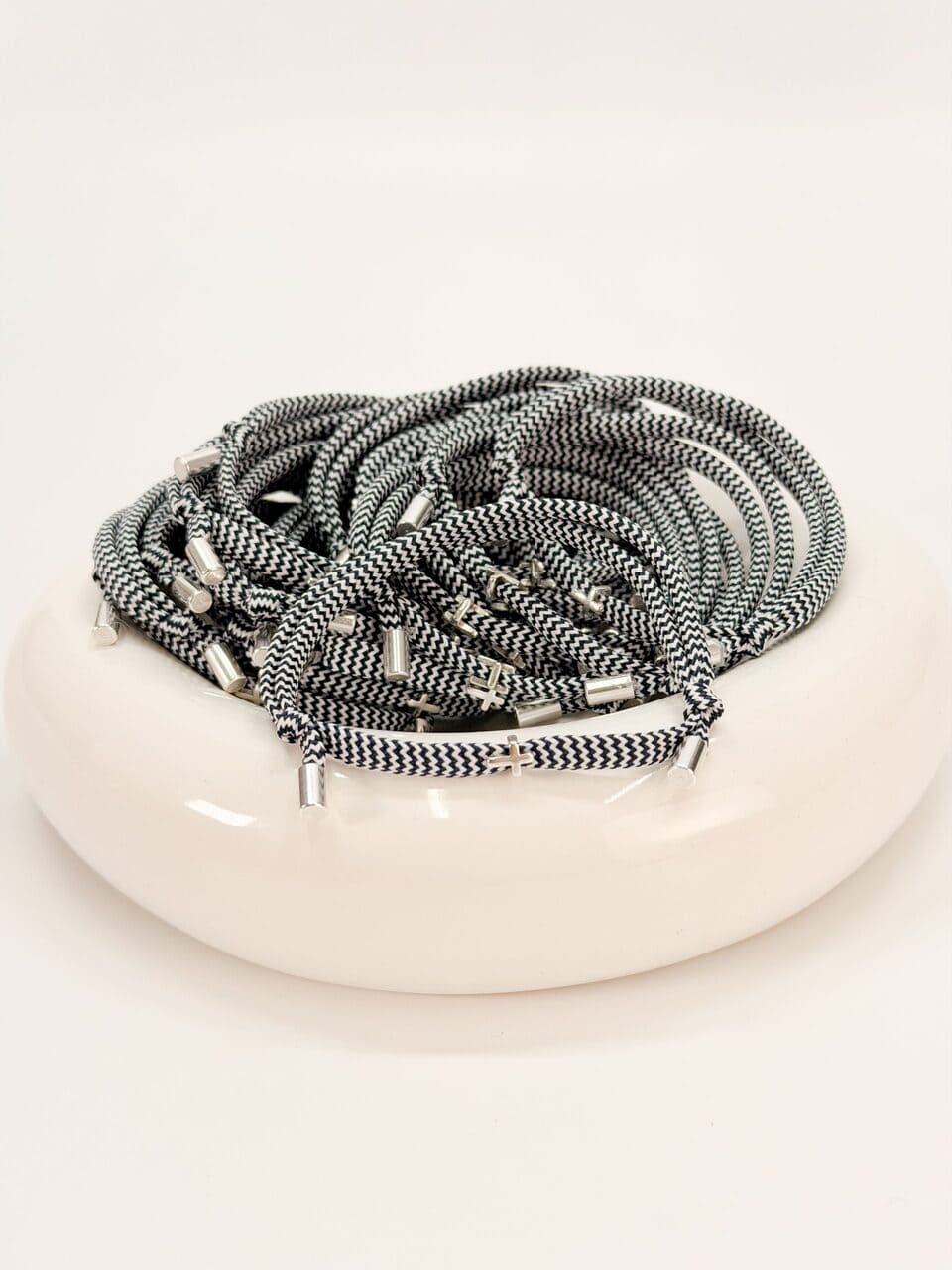 Μαρτυρικό βραχιόλι με πλακέ δίχρωμο κορδόνι και ασημί στοιχεία.