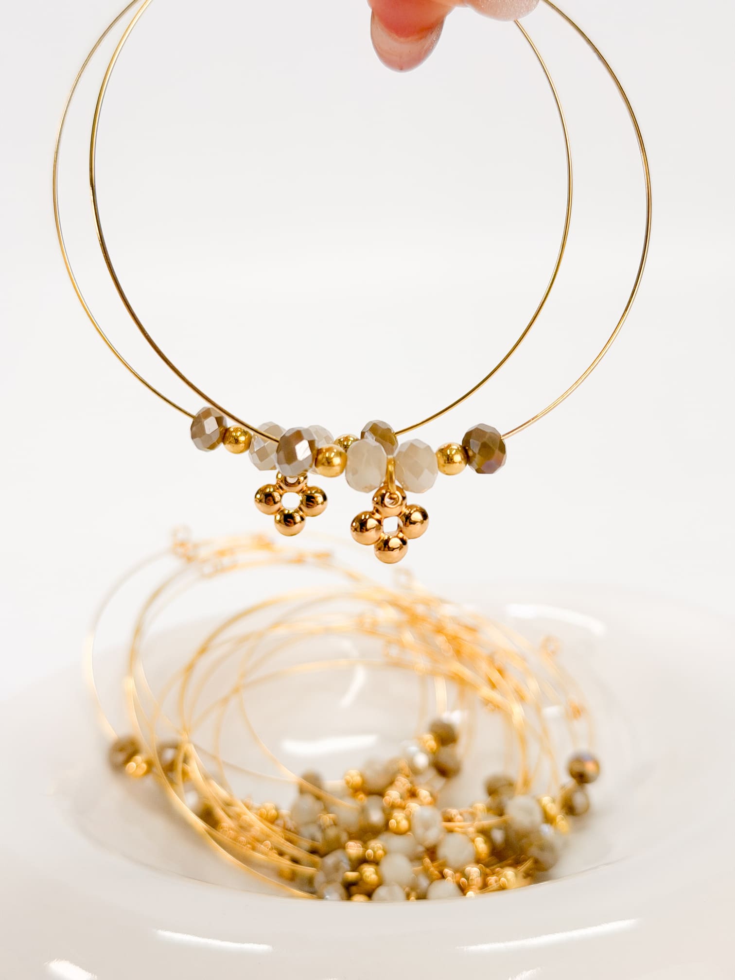Μαρτυρικό βραχιόλι με  memory wire,κρύσταλλα και επιχρυσωμένο σταυρό.