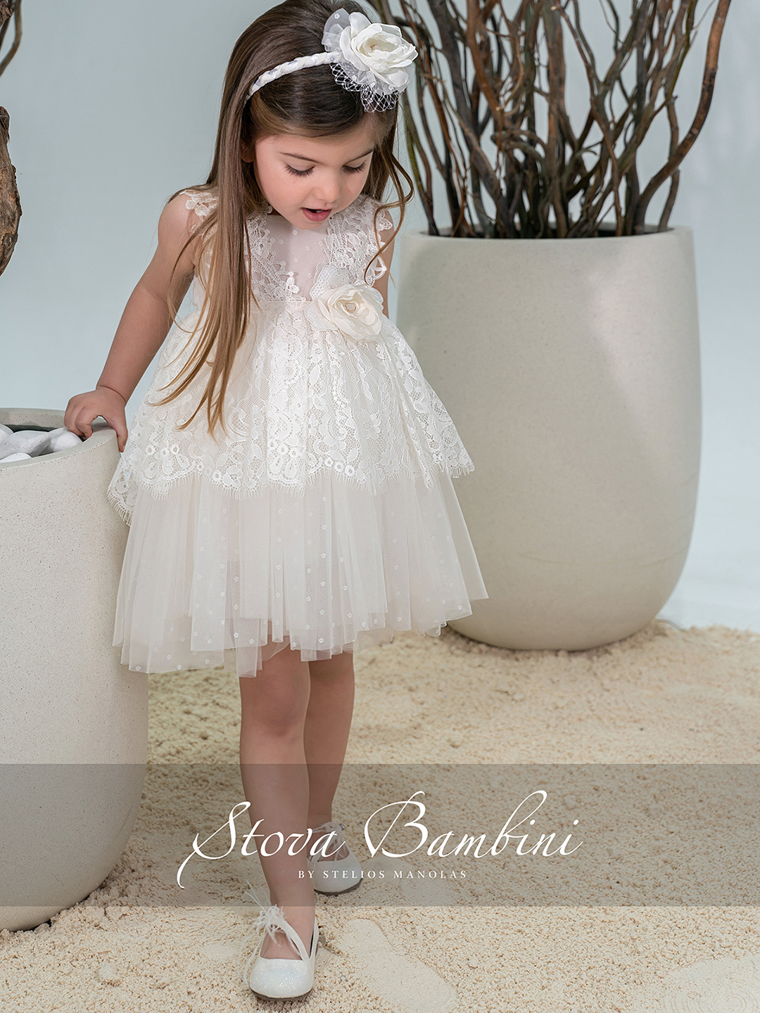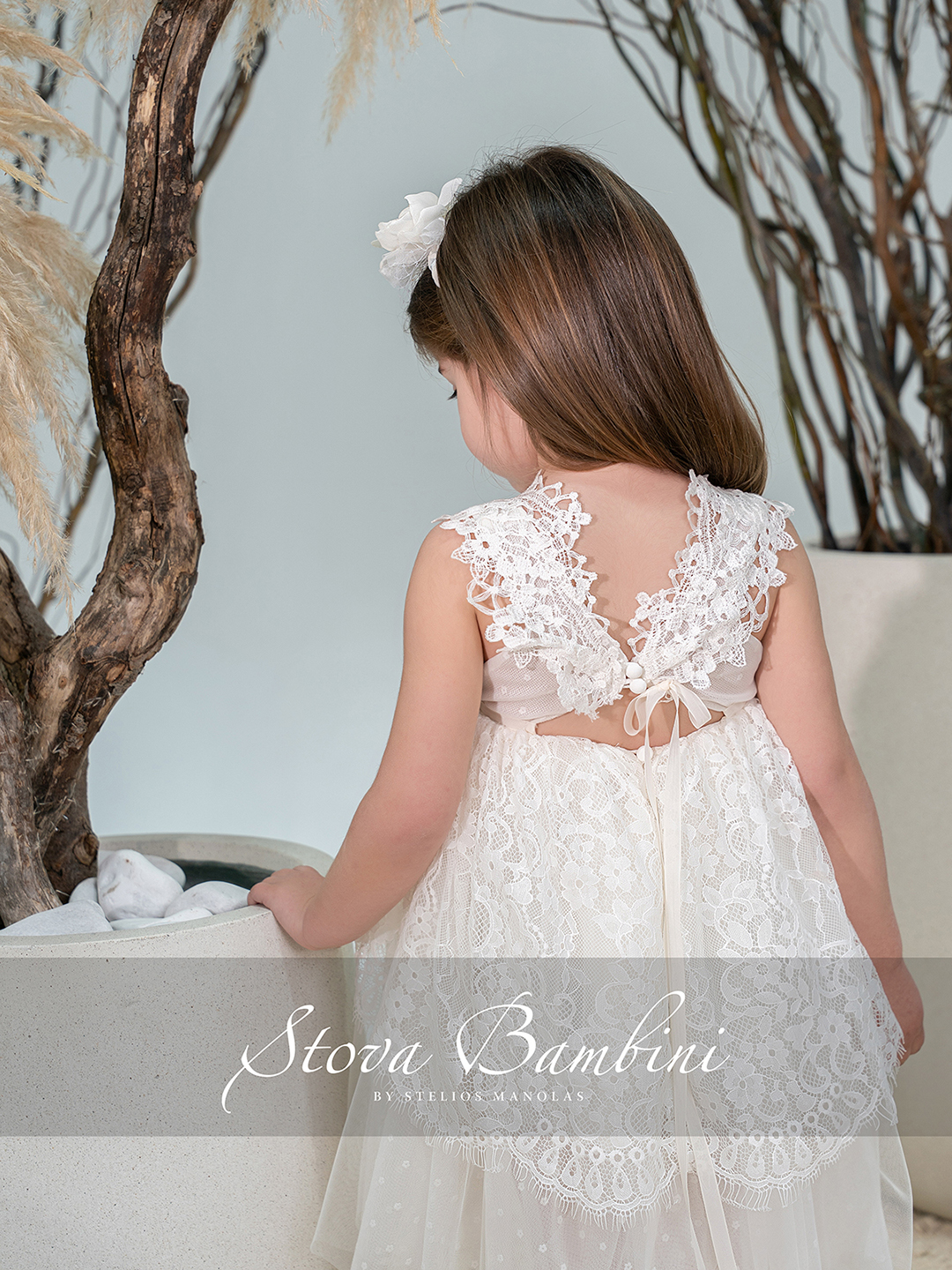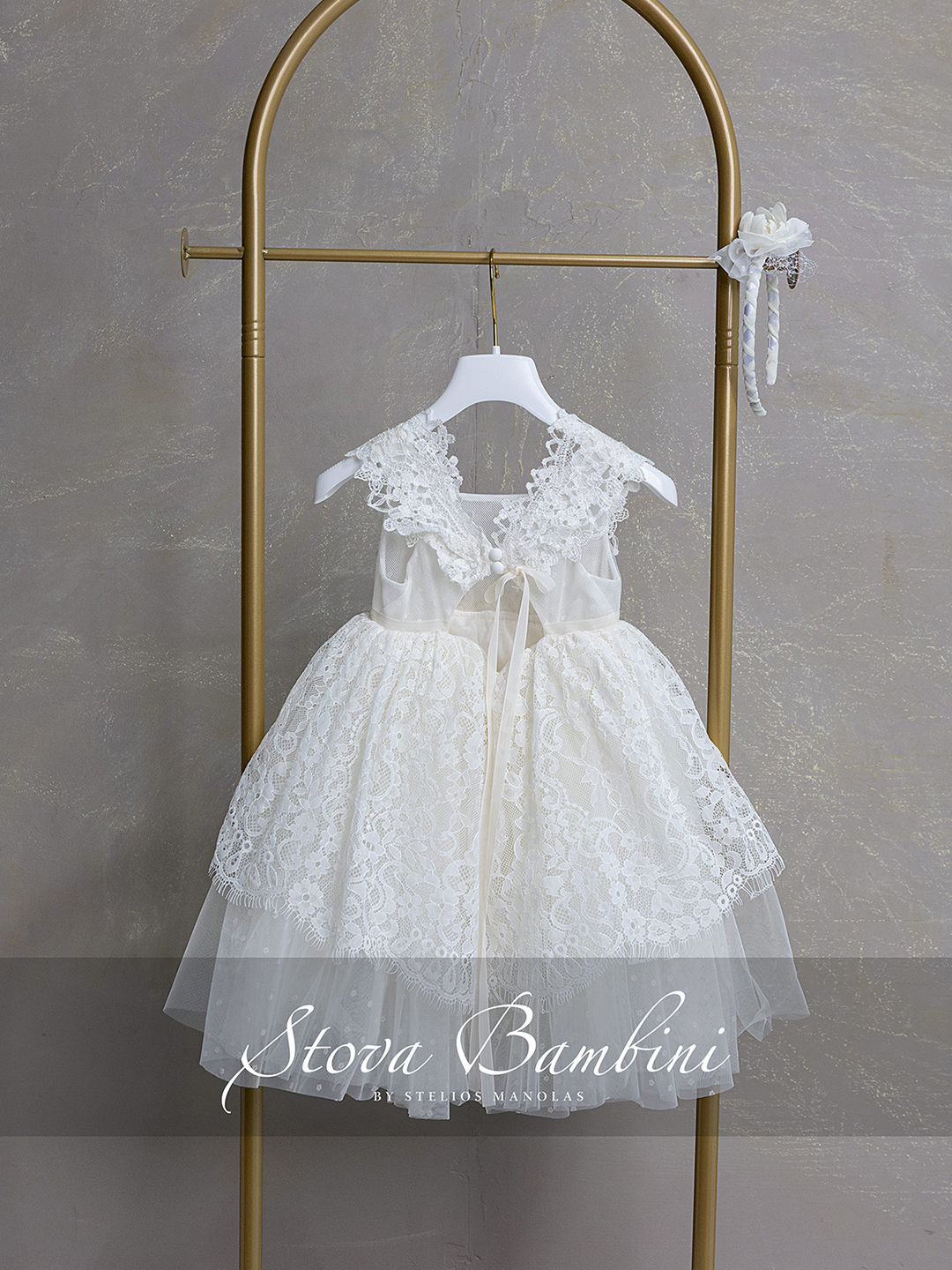 Εκλεπτυσμένο και διαχρονικά κομψό φόρεμα σε φίνα ivory απόχρωση, που ξεχωρίζει για την ιδιαίτερη υφή και τη λεπτομέρειά του. Το μπούστο από περίτεχνη δαντέλα Ιταλίας με διακριτικές διαφάνειες αναδεικνύει με μοναδικό τρόπο το σχέδιο, ενώ οι εντυπωσιακές δαντελένιες τιράντες προσθέτουν μία αίσθηση υψηλής αισθητικής. Η φούστα από πλούσια δαντέλα του επώνυμου Γαλλικού Οίκου Sophie Hallette σε συνδυασμό με ανάλαφρο τούλι Ισπανίας, δημιουργεί ένα αέρινο αποτέλεσμα με όμορφη κίνηση και βάθος. Η ζώνη στη μέση ολοκληρώνεται με ένα εντυπωσιακό χειροποίητο λουλούδι, προσθέτοντας μία φίνα και διακριτική πινελιά πολυτέλειας στο σύνολο. Η πλάτη με τα κουμπάκια και το κομψό δέσιμο ενισχύει τον εκλεπτυσμένο χαρακτήρα του φορέματος, χαρίζοντας μία ολοκληρωμένη εικόνα υψηλής ραπτικής. Όλα τα φορέματα διαθέτουν εσωτερική επένδυση 100% Cotton για απόλυτη άνεση. Διαθέσιμα μεγέθη: 6–36 μηνών και κατά παραγγελία μεγαλύτερα μεγέθη. Όλη η συλλογή σχεδιάζεται και κατασκευάζεται στην Ελλάδα.