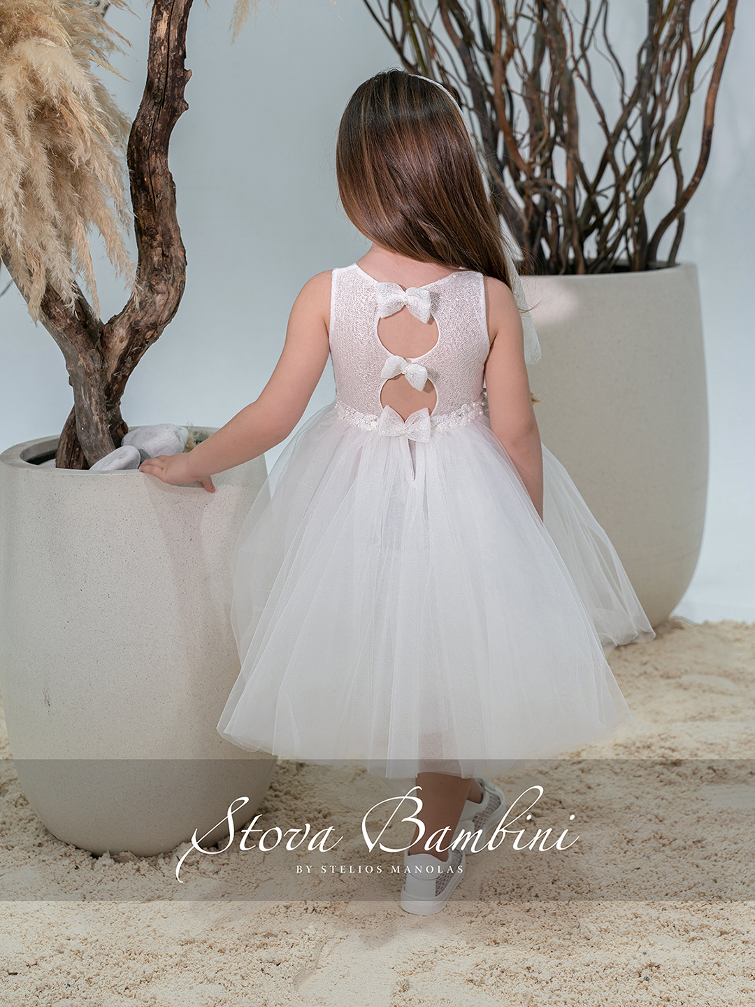 Ένα φόρεμα statement σε απαλούς ivory και blush τόνους, που ξεχωρίζει για την ισορροπία ανάμεσα στη φινέτσα και τη σύγχρονη αισθητική. Το μπούστο από φίνο τούλι με διακριτικές διαφάνειες συνδυάζεται αρμονικά με λεπτομέρειες Ιταλικής ακριβής δαντέλας, δημιουργώντας μία κομψή και ανάλαφρη γραμμή. Η μέση αναδεικνύεται μέσα από μία εντυπωσιακή σύνθεση μεγάλων χειροποίητων λουλουδιών σε nude και dusty-pink αποχρώσεις, που προσδίδουν χαρακτήρα και μοναδικότητα στο σύνολο. Οι δαντελένιες λεπτομέρειες που πλαισιώνουν τη σύνθεση ενισχύουν το εκλεπτυσμένο αποτέλεσμα. Η φούστα από πολυτελές τούλι Ιταλίας σε απαλές στρώσεις χαρίζει όγκο και κίνηση, δημιουργώντας ένα φίνο και ονειρικό αποτέλεσμα που ξεχωρίζει σε κάθε εμφάνιση. Όλα τα φορέματα διαθέτουν εσωτερική επένδυση 100% Cotton για απόλυτη άνεση. Διαθέσιμα μεγέθη: 6–36 μηνών και κατά παραγγελία μεγαλύτερα μεγέθη. Όλη η συλλογή σχεδιάζεται και κατασκευάζεται στην ΕλλάδαΒαπτιστικό Σετ Stova Bambini SS26 G8
