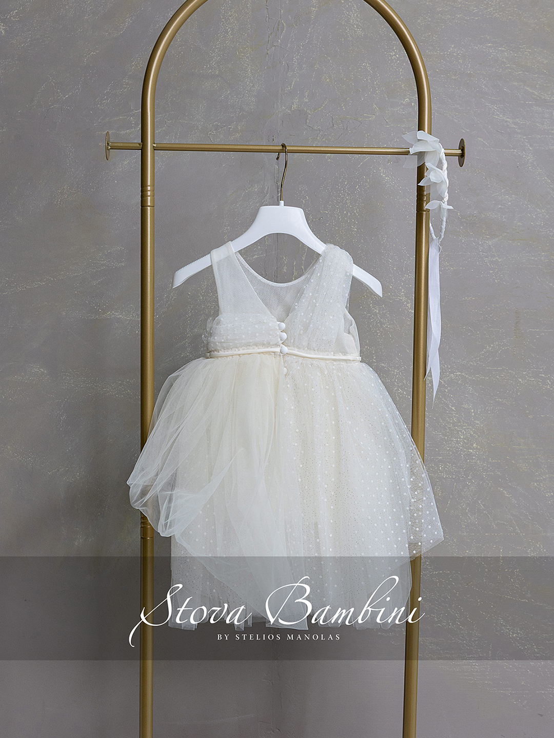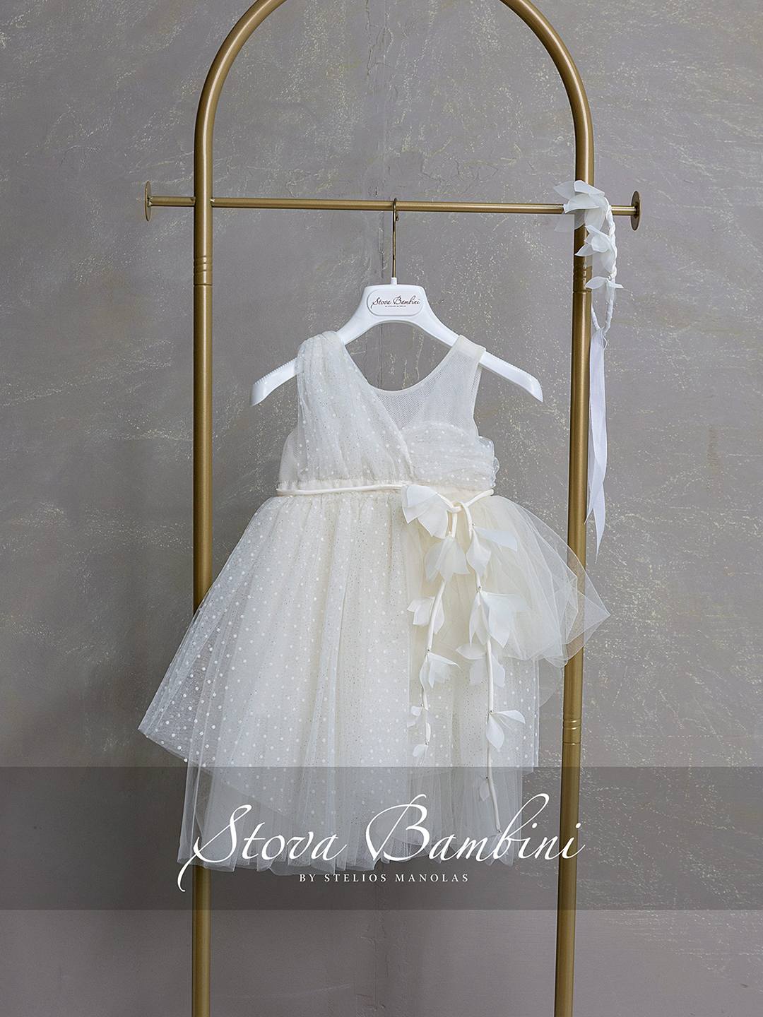 Αέρινο και ρομαντικό φόρεμα σε απαλή ivory απόχρωση, σχεδιασμένο για να ξεχωρίζει με τη διακριτική του κομψότητα. Το ασύμμετρο μπούστο από φίνο Tulle Flock και glitter δημιουργεί ένα ιδιαίτερο draped αποτέλεσμα, χαρίζοντας μοναδική υφή και κίνηση στο σύνολο. Η φούστα από ανάλαφρο Tulle Flock και glitter αγκαλιάζει αρμονικά τη σιλουέτα, ενώ οι διαφορετικές στρώσεις σε ivory τόνους προσθέτουν βάθος και ονειρική αίσθηση. Η λεπτή ζώνη στη μέση (Γαλλίας) ολοκληρώνεται με εντυπωσιακή χειροποίητη σύνθεση από υφασμάτινα λουλούδια και διακριτικές λεπτομέρειες, προσδίδοντας έναν ιδιαίτερα φίνο χαρακτήρα. Όλα τα φορέματα διαθέτουν εσωτερική επένδυση 100% Cotton για απόλυτη άνεση. Διαθέσιμα μεγέθη: 6–36 μηνών και κατά παραγγελία μεγαλύτερα μεγέθη. Όλη η συλλογή σχεδιάζεται και κατασκευάζεται στην Ελλάδα.
